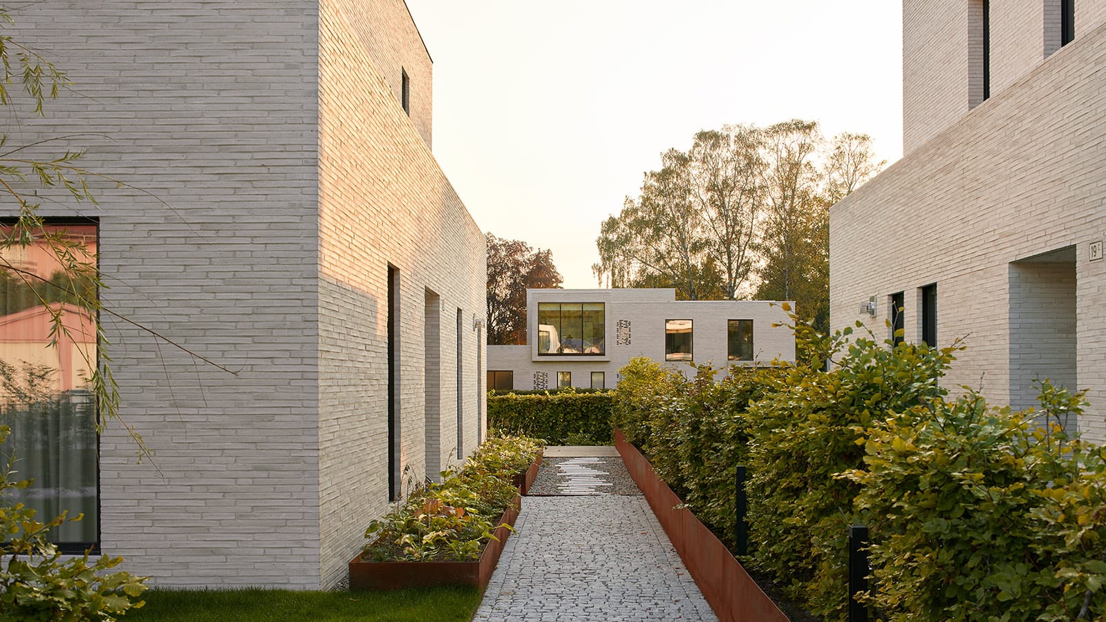 Blødstrøgne mursten med små krumninger og uregelmæssige overflader giver en organisk fornemmelse i murværketSkær ned på de lige linjer for at gøre plads til elegance.