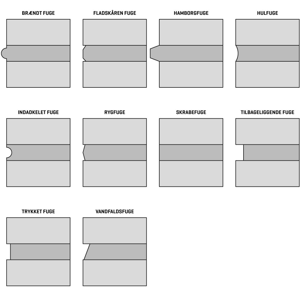 Nedenfor ses de mest anvendte kodede murstensforbandter i Danmark.